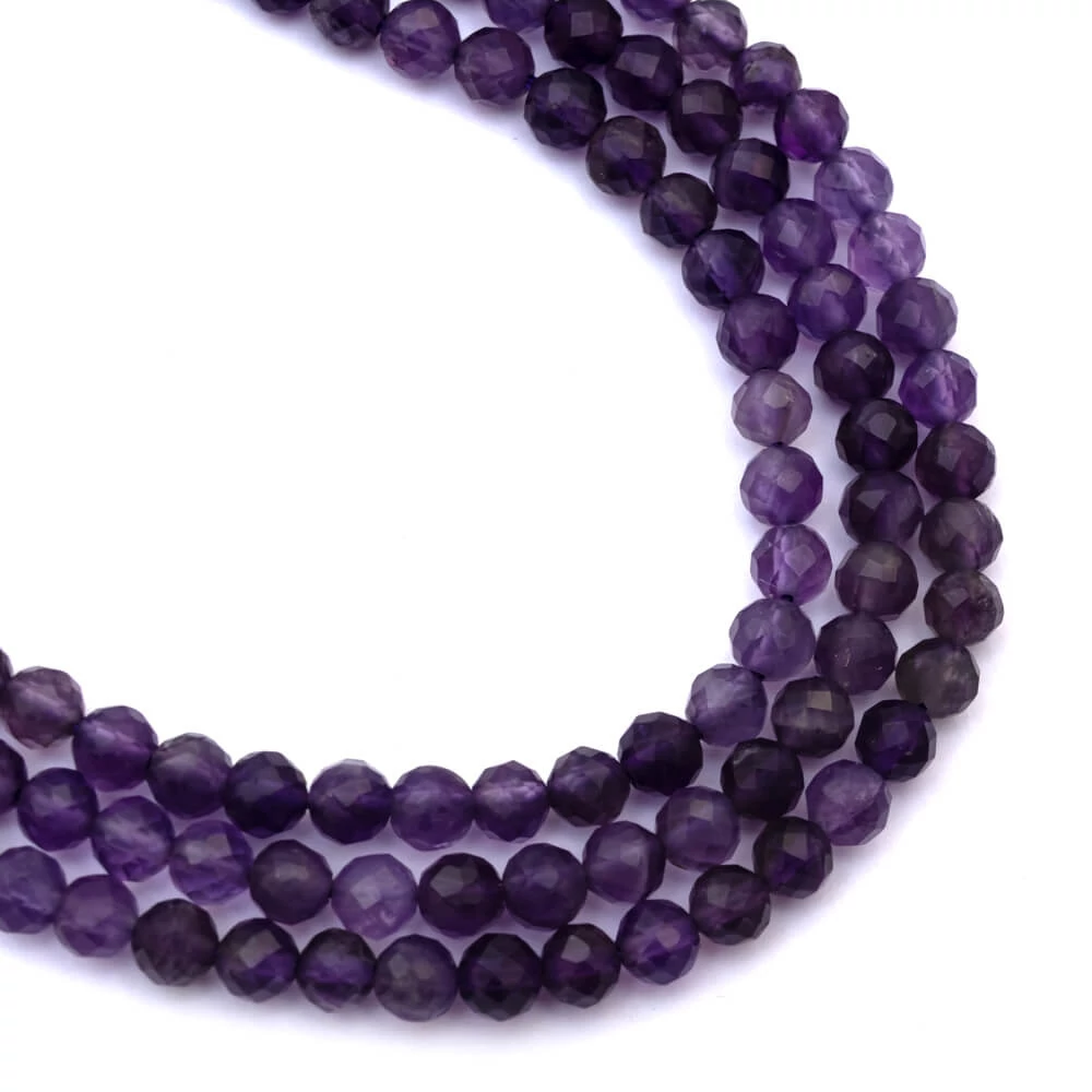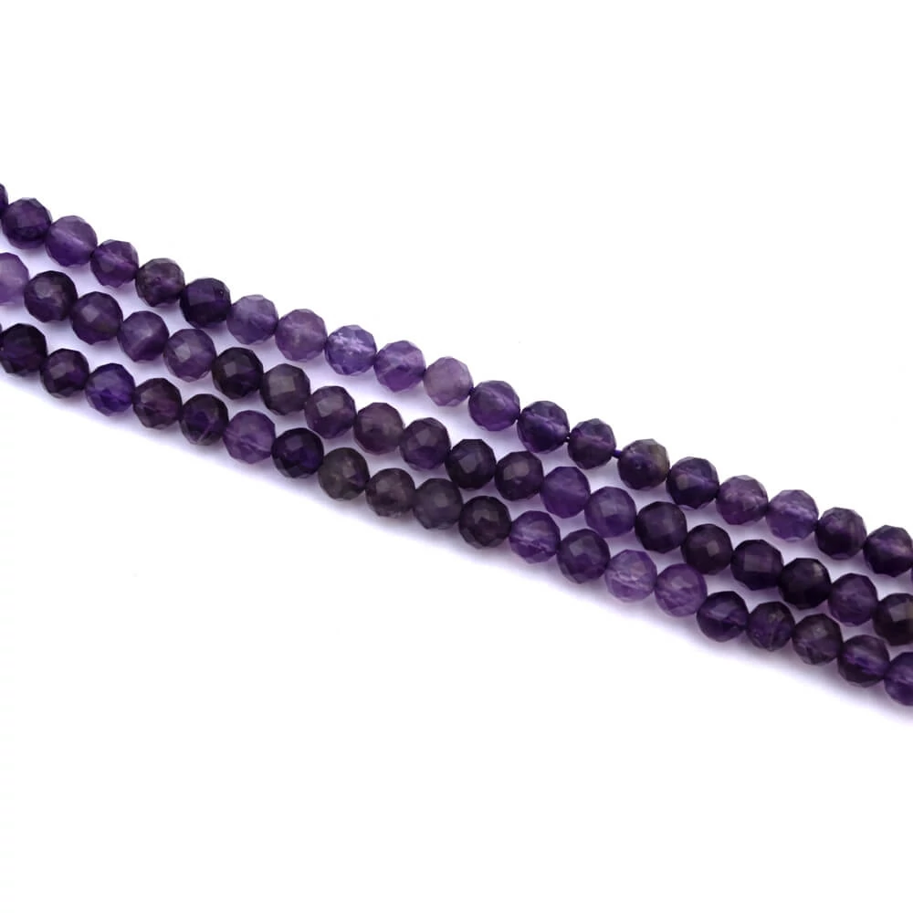 Ametiszt fazettált golyós szál, 4 mm, A minőségű kb. 38 cm