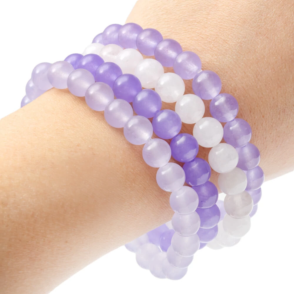 Fehér jáde és lila színezett jáde 4 db-os karkötő szett, 8 mm, 17 cm
