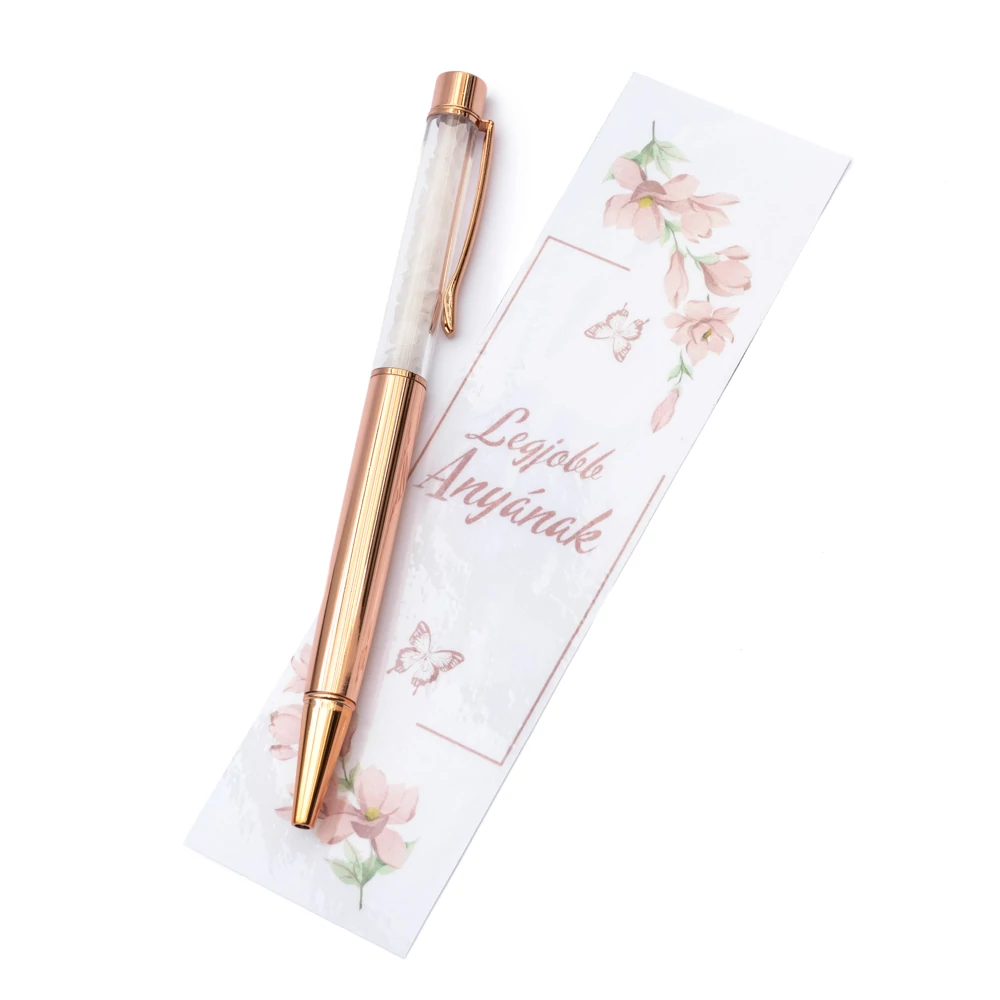 Golyóstoll, rózsakvarc, rosegold szín, Legjobb Anyának kísérőkártyával, virágos
