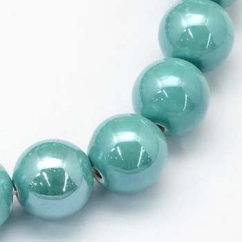 Porcelán gyöngyházfényű (türkizkék) gyöngy, 8 mm (10 db)