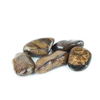 Az L méretű (25-30 mm) bronzit marokkő olyan magnézium szilikát ásvány, amely gyakori, csiszolatlan formában igen hétköznapi kinézetű ásvány, mely az ókor óta nagy gazdagságban elérhető szerte a világon. Manapság leginkább dísztárgyakról illetve ritkábban ékszerekről ismerjük, azonban az ókor óta a történelmi korokban vélt gyógyhatásainak köszönhetően is alkalmazták. |
