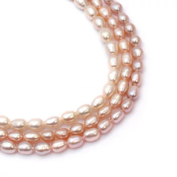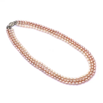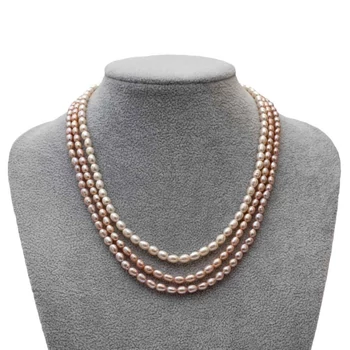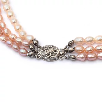 Rizs tenyésztett gyöngy nyaklánc acél szerelékkel, 3 szín, 3 sor, 4-5 mm, 42 cm