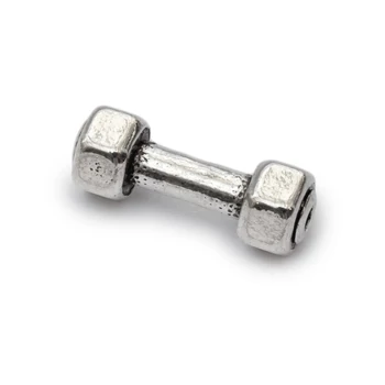 | Ezüst szín, 17x6 mm méretű, súlyzó köztes dísz nikkelmentes fémötvözetből, 1 db-os kiszerelésben. Hasonlóan az ásvány gyöngyökhöz, furattal rendelkező fém divatékszer kiegészítő, mely az egyéb gyöngyök sorába illeszthető karkötő vagy nyaklánc készítés során. | |