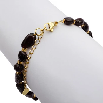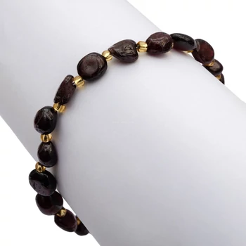 Gránát pubble és kásagyöngy arany szín, ásvány karkötő, 17 cm