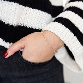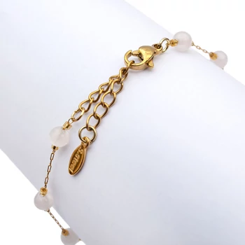 Rózsakvarc 4 mm golyós és arany láncos ásvány karkötő, 17 cm