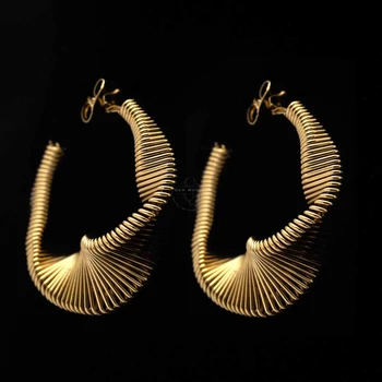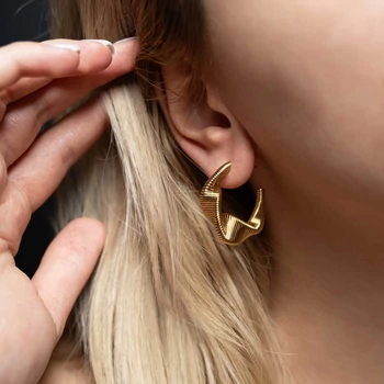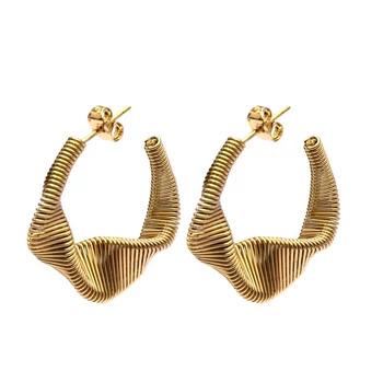 Nemesacél fülbevaló, fél karika, vastag, csavart-hullámos arany színű, kb. 30 mm (1 pár)