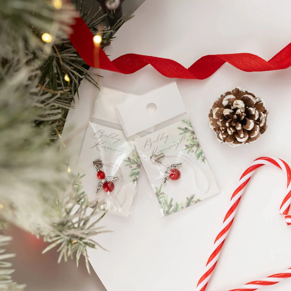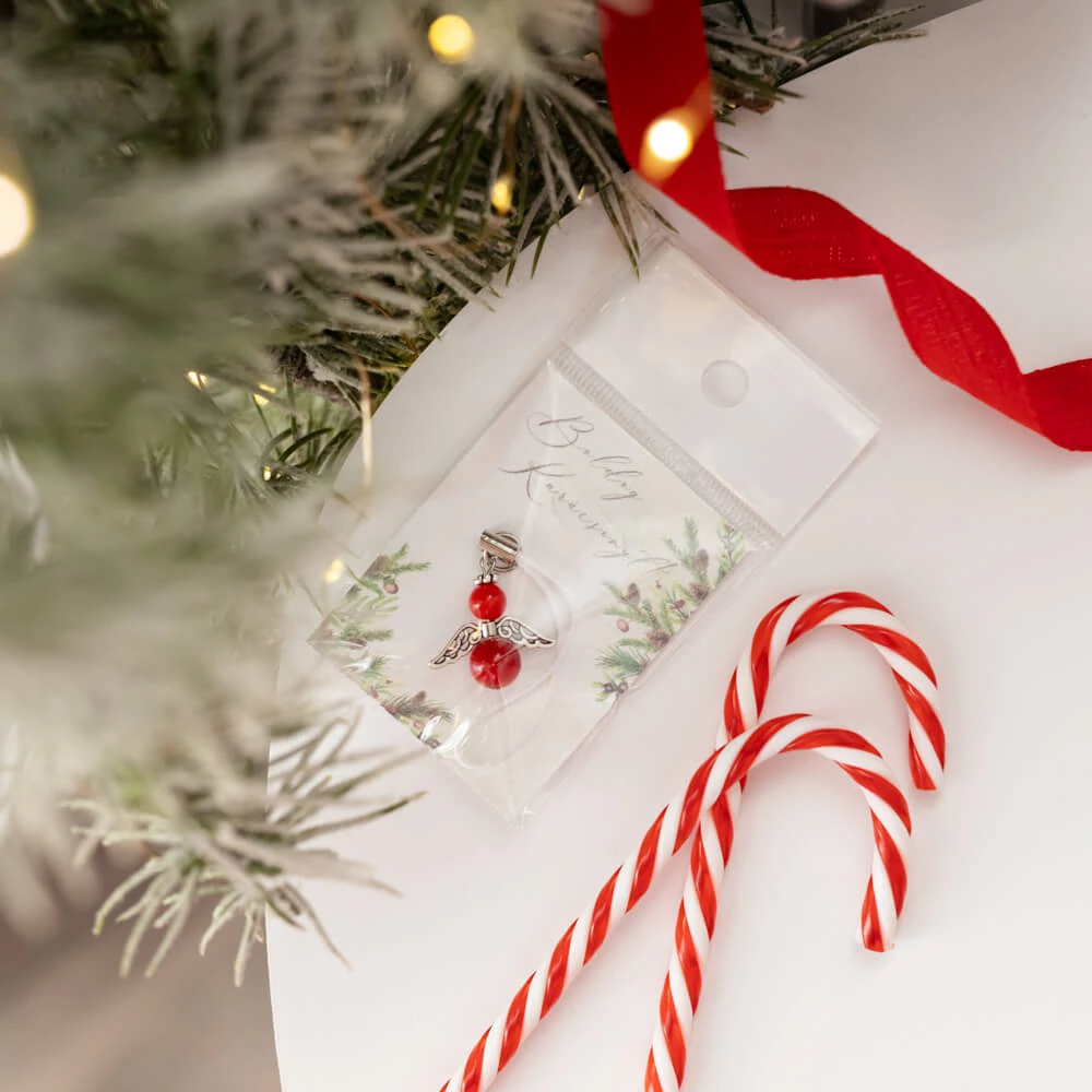Karácsonyi angyalka kulcstartó, mashan jáde táskadísz, gyöngyök: 6 mm, 8 mm