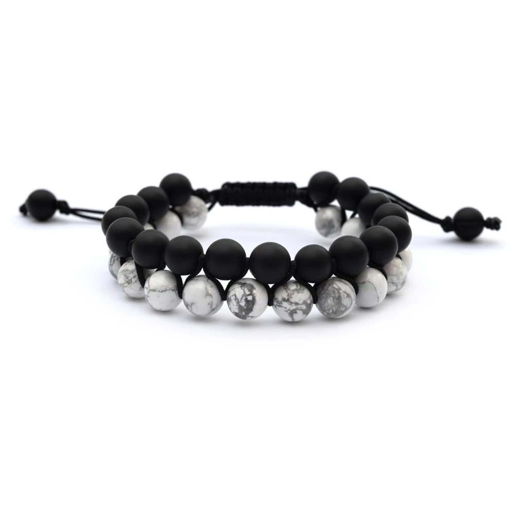 Matt ónix és howlit csúszócsomós ásvány karkötő, 2 soros, állítható, 8 mm