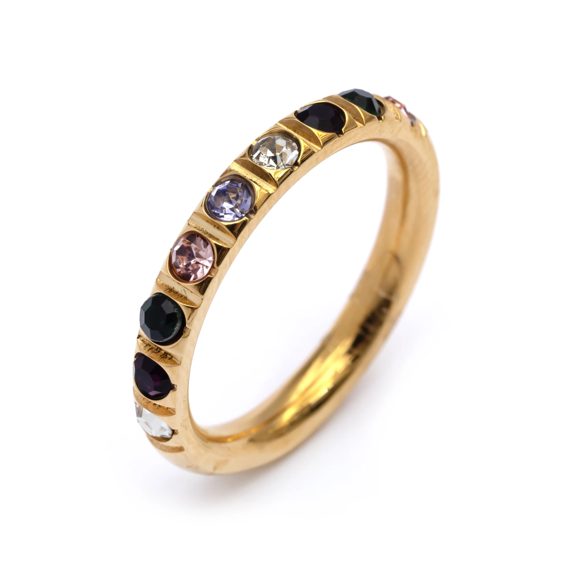 Nemesacél gyűrű, vékony, színes köves, arany színű, kb. 58-59 méret