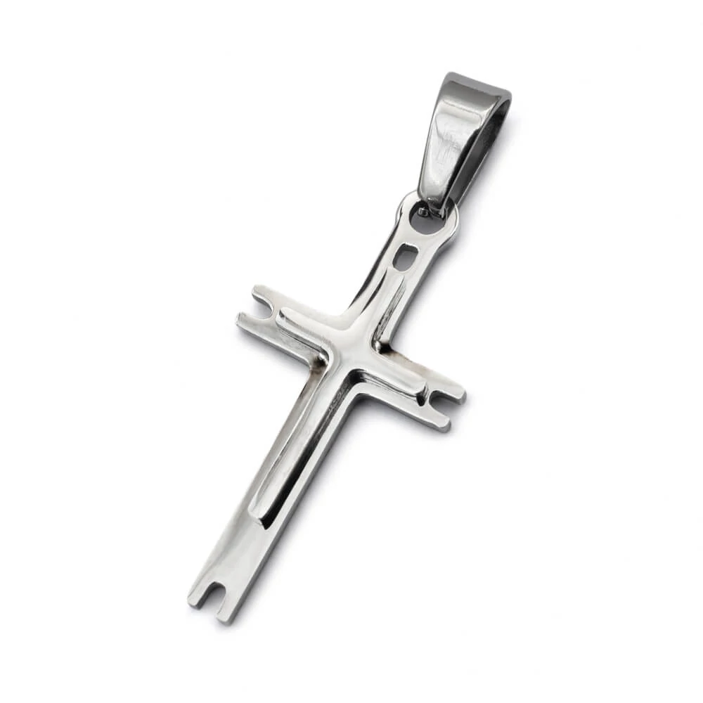 Nemesacél kereszt medál, vékony, dupla mintával.