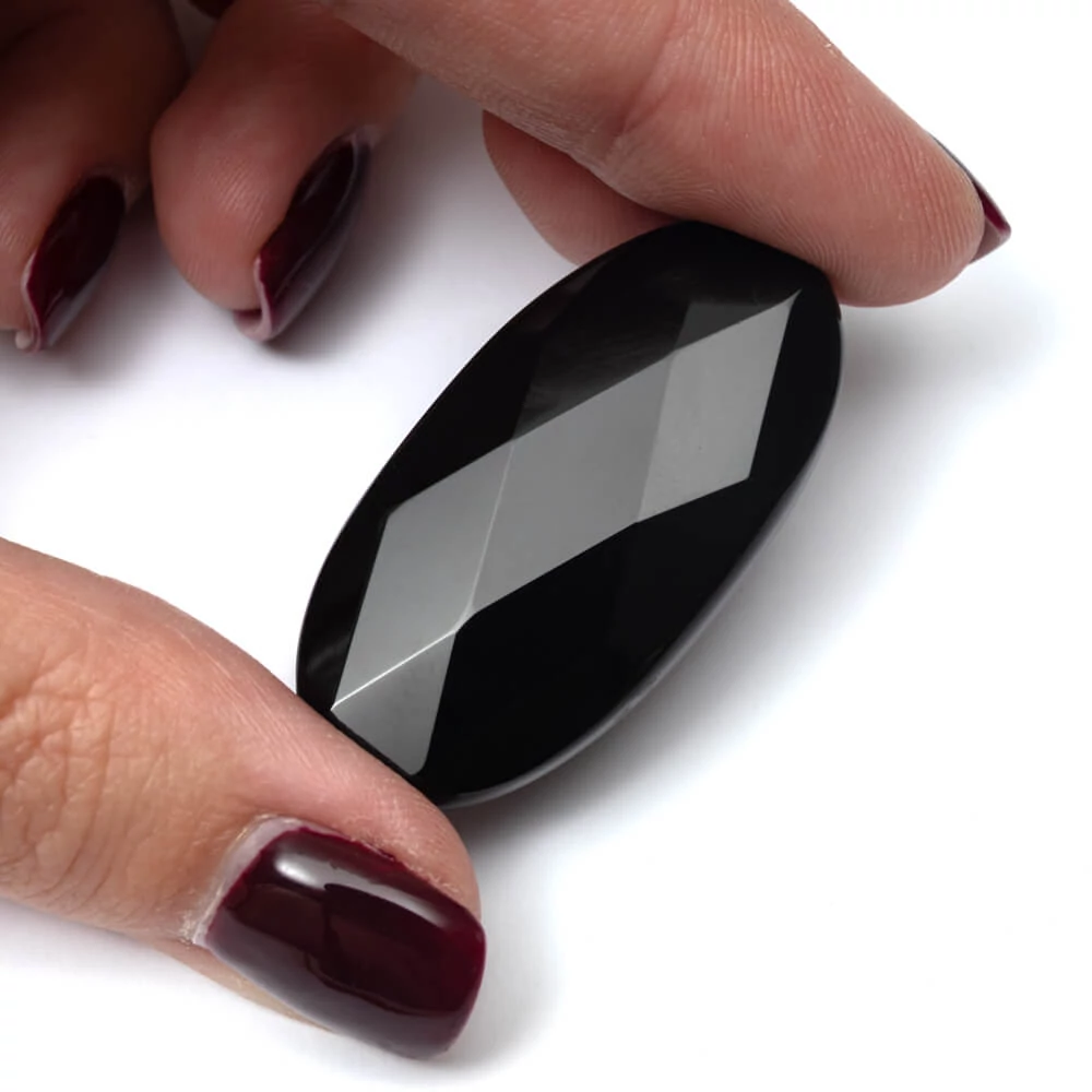 Ónix gyöngy, fazettált, ovális, 40x20 mm