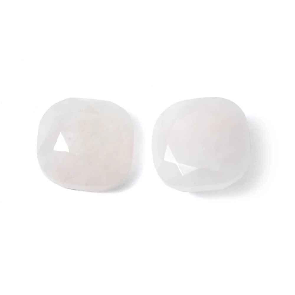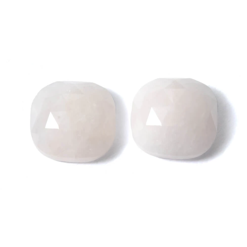 11x11x4 mm méretű, valódi, fazettált négyzet alakú rózsakvarc cabochon kő, ékszer készítéshez, 2 db-os kiszerelésben