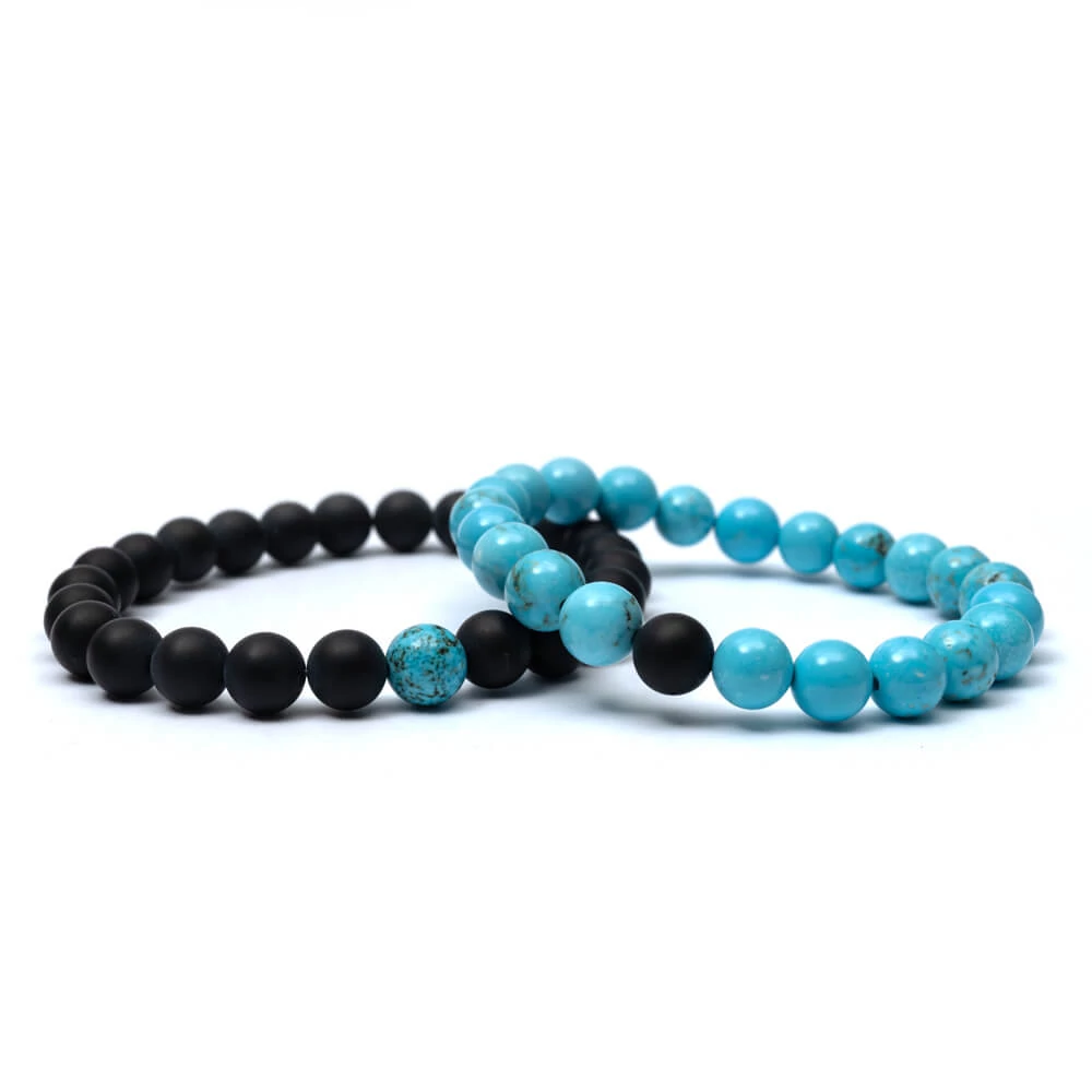 Türkinit és ónix páros karkötő, 16 cm, 17 cm, 2 db