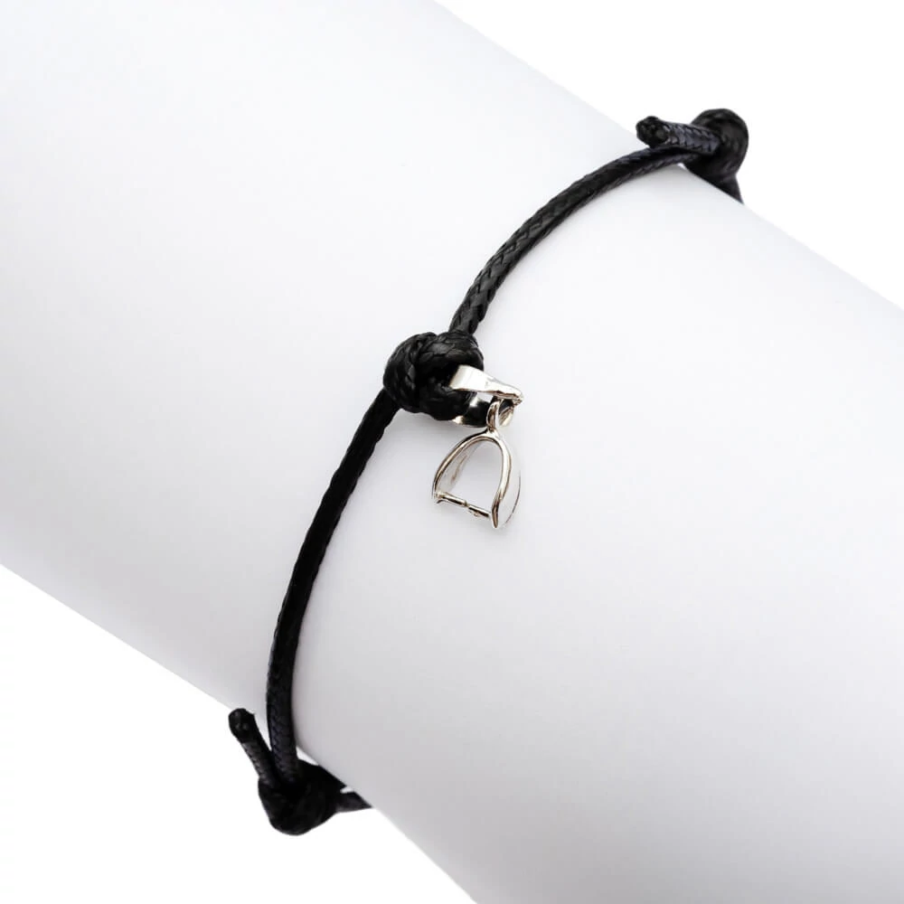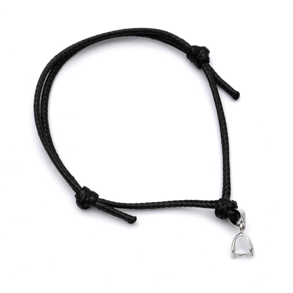 Viaszolt kord csúszócsomós karkötő, fekete, medáltartóval, állítható 13-24 cm